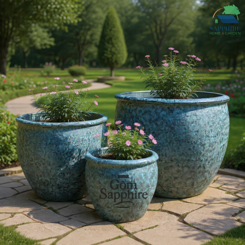 Mang đậm vẻ đẹp của biển cả, bộ chậu gốm men Atlantis xanh ngọc là sự kết hợp tinh tế giữa nghệ thuật thủ công truyền thống và phong cách trang trí hiện đại. Lớp men xanh ngọc độc đáo với hiệu ứng loang tự nhiên, gợi liên tưởng đến màu nước biển hòa cùng lớp san hô cổ điển, tạo nên bề mặt gốm sống động và cuốn hút.
