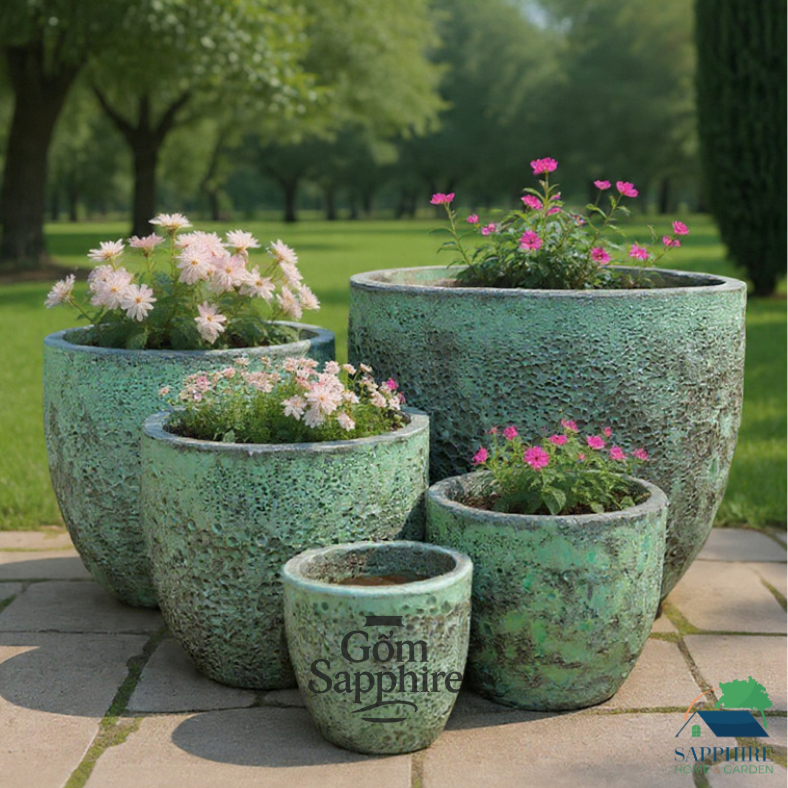 Mang vẻ đẹp của thời gian và thiên nhiên, Bộ Chậu Gốm Men Atlantis gây ấn tượng với hiệu ứng men rêu xanh tự nhiên, mô phỏng quá trình oxy hóa của đồng cổ – một trong những dòng men được yêu thích nhất trong bộ sưu tập Atlantis.