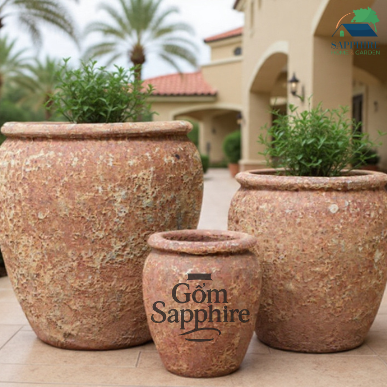 Mang đậm hơi thở của thiên nhiên và nét đẹp truyền thống, Bộ Chậu Gốm Dáng Tròn Cổ Điển là lựa chọn lý tưởng cho những ai yêu thích phong cách mộc mạc, gần gũi nhưng vẫn tinh tế. Sản phẩm được chế tác thủ công từ gốm sứ cao cấp, phủ lớp men sần tự nhiên với gam ấm áp, tạo cảm giác cổ kính và sang trọng.