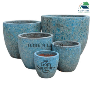 Mang sắc xanh mát dịu của đại dương, Bộ Chậu Gốm Trứng Men Xanh Biển Atlantis là điểm nhấn hoàn hảo cho mọi không gian sống. Bề mặt chậu được phủ lớp men xanh biển với hiệu ứng loang tự nhiên, tạo chiều sâu và cảm giác như những gợn sóng nước vỗ nhẹ, đem lại sự thư thái và tươi mới cho không gian.