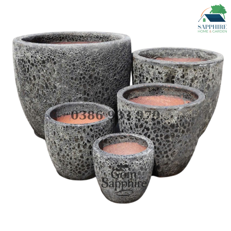 Mang đậm nét huyền bí và tinh tế, Bộ Chậu Gốm Trứng Men Black Atlantis là lựa chọn hoàn hảo cho những ai yêu thích vẻ đẹp mạnh mẽ, hiện đại nhưng vẫn gần gũi với thiên nhiên. Bề mặt chậu được phủ lớp men đen đặc trưng của dòng Atlantis, tạo hiệu ứng lỗ khí tự nhiên như bọt đá nham thạch, vừa độc đáo vừa sang trọng.