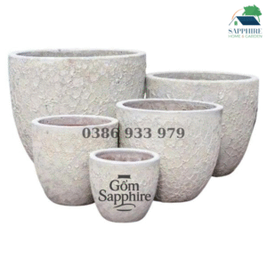 Mỗi chiếc chậu được làm thủ công tại làng gốm Bình Dương, trải qua quá trình nung nhiệt độ cao trên 1200°C, giúp sản phẩm có độ bền tuyệt vời, chống rạn nứt, chịu được nắng mưa và phù hợp cho cả không gian trong nhà lẫn ngoài trời.