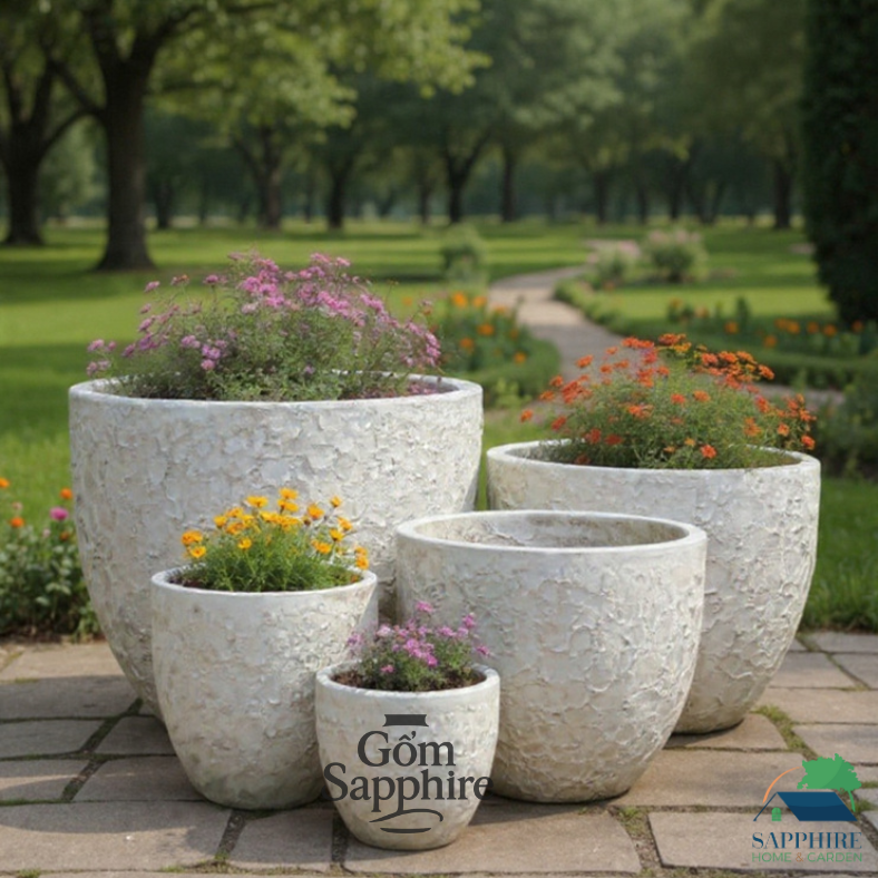 Mang đậm hơi thở của sự tinh khiết và hiện đại, bộ chậu gốm men Atlantis trắng là lựa chọn lý tưởng cho những ai yêu thích phong cách tối giản nhưng sang trọng. Màu trắng cùng hiệu ứng men sôi tự nhiên độc đáo, tạo nên bề mặt gốm như lớp đá khoáng tinh thể – vừa mộc mạc, vừa đẳng cấp.