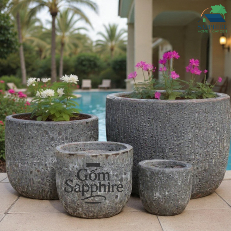 Không chỉ là vật dụng trồng cây, bộ chậu gốm giả đá xám còn là điểm nhấn trang trí đẳng cấp, mang lại cảm giác thanh lịch và gần gũi với thiên nhiên cho không gian sống của bạn.