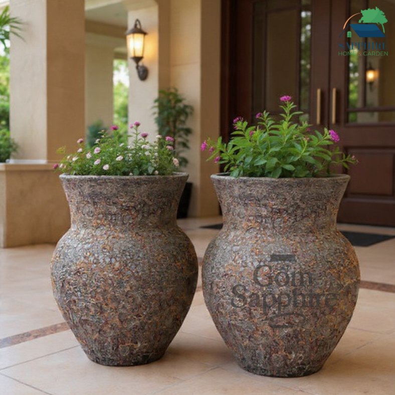Phong cách thiết kế hiện đại pha trộn cổ điển giúp bộ chậu dễ dàng hòa hợp với nhiều không gian: sân vườn, ban công, khu nghỉ dưỡng, homestay hay các công trình cảnh quan cao cấp. Chất liệu gốm nung bền chắc, chịu thời tiết tốt, thích hợp cho cả trong nhà và ngoài trời.
